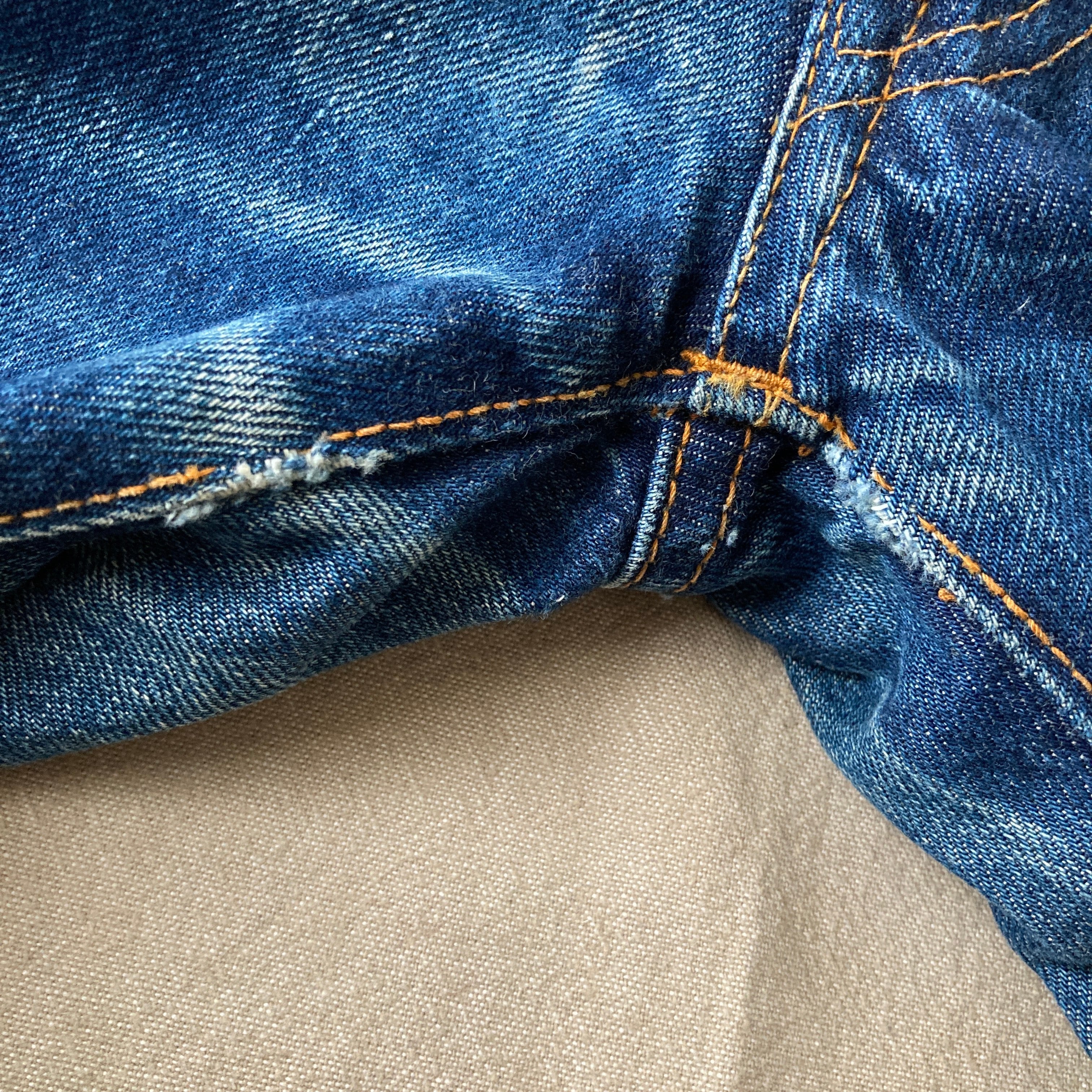 当時のリーバイスでも使われていたコーンミルズ社製デニムを輸入して国内で製造された物かと思います。