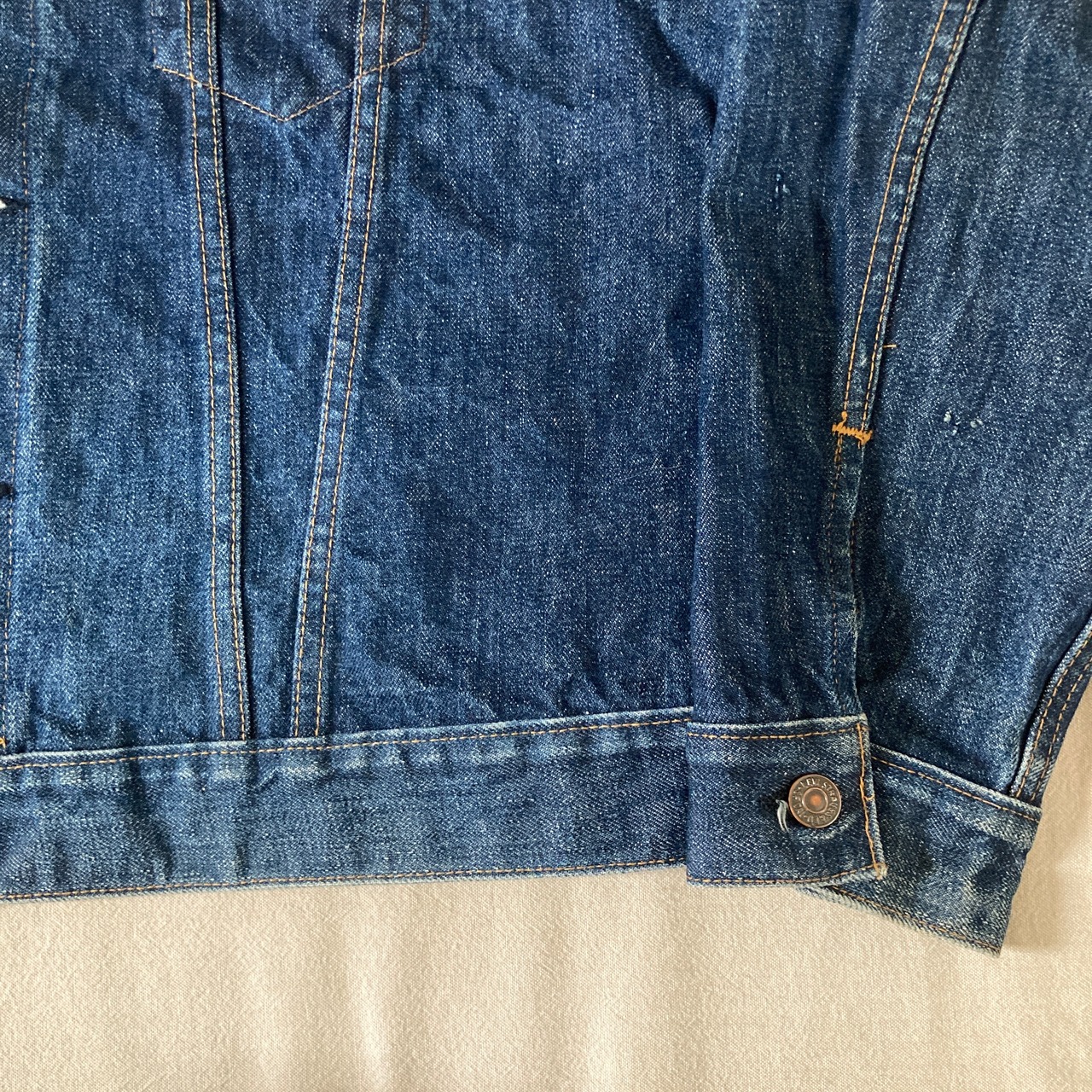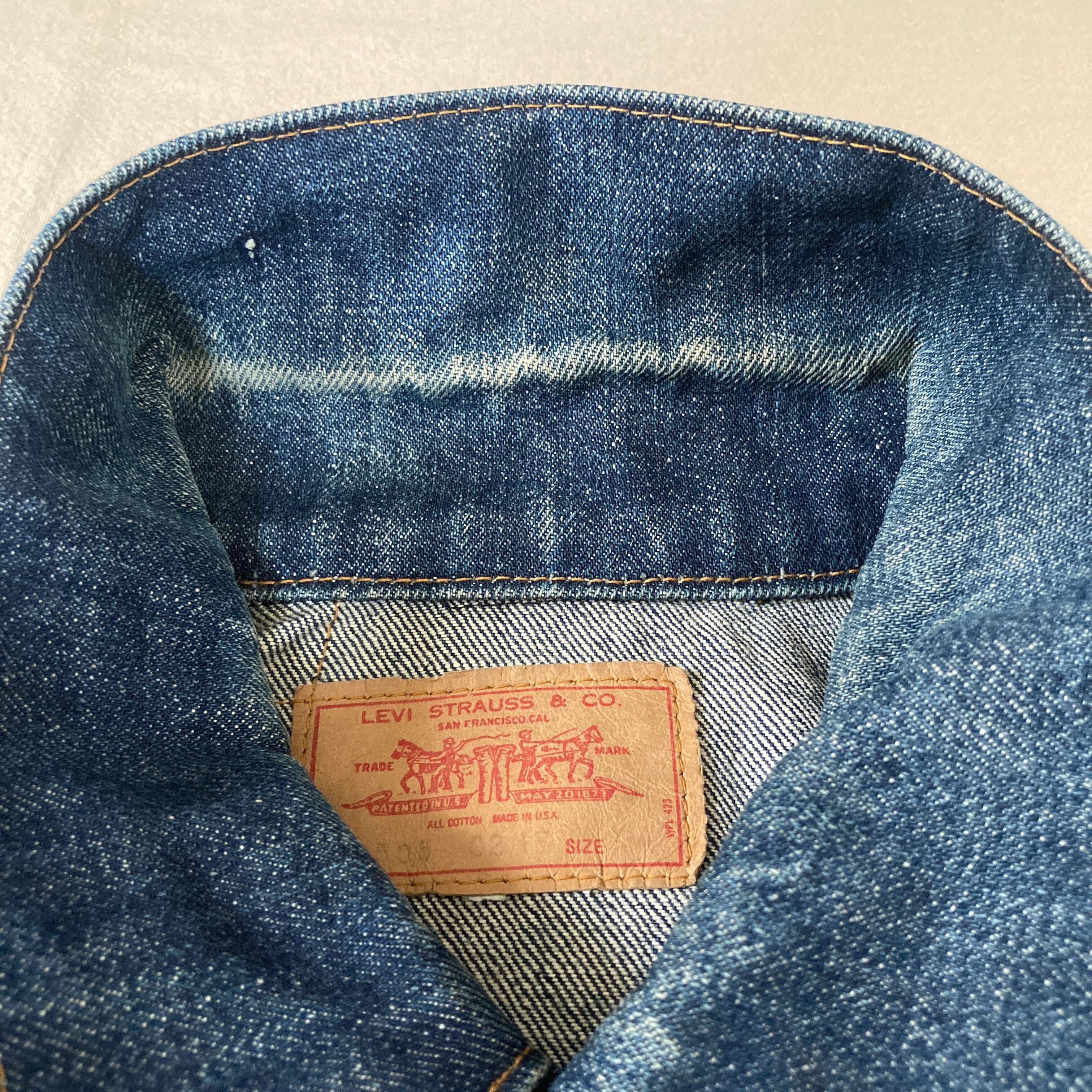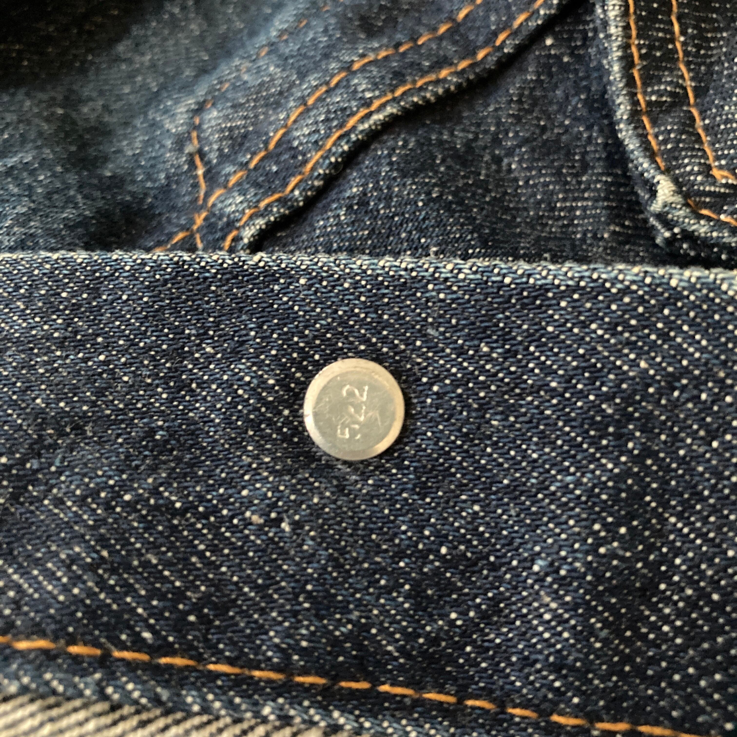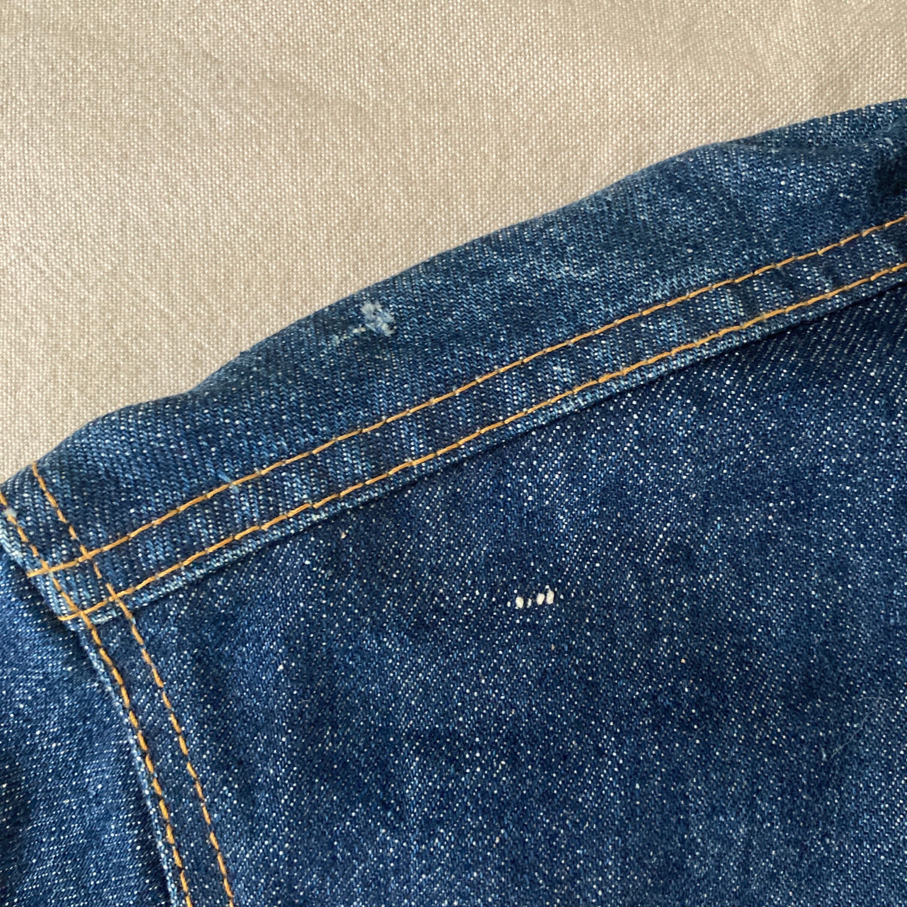 生地のゴワつき、ネップ感、大きく飛び出した赤タブ等オールドの雰囲気です。