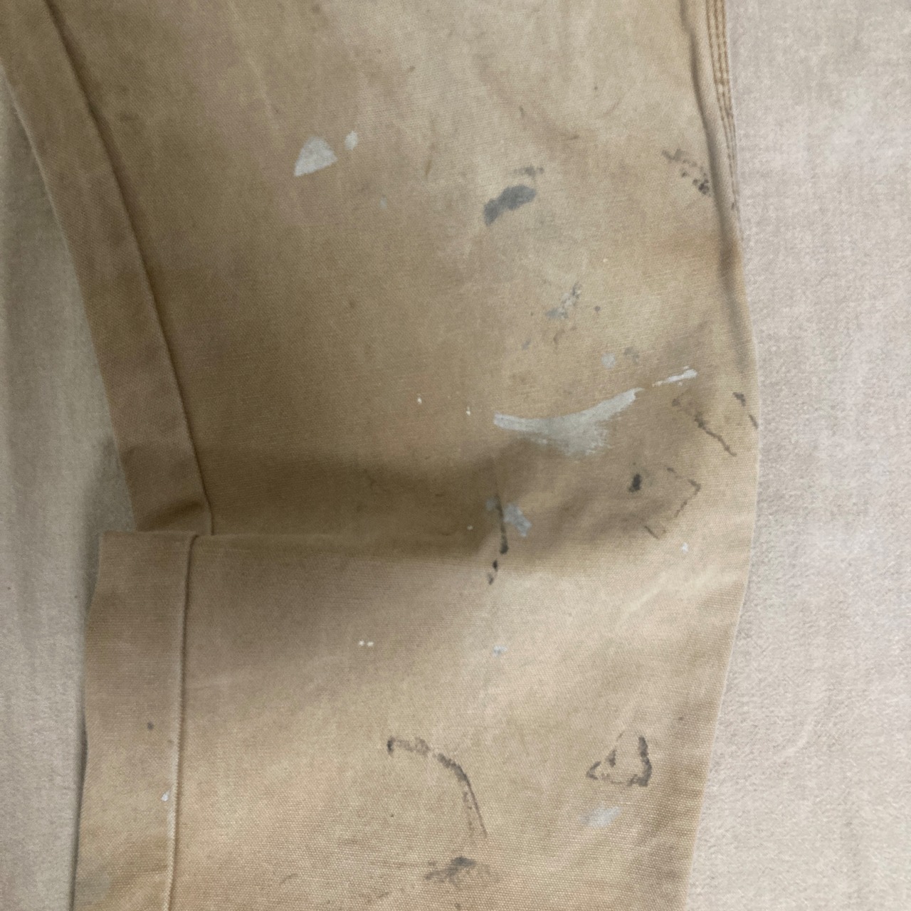 履き込まれて汚れやペンキの飛んだ雰囲気のあるエイジング