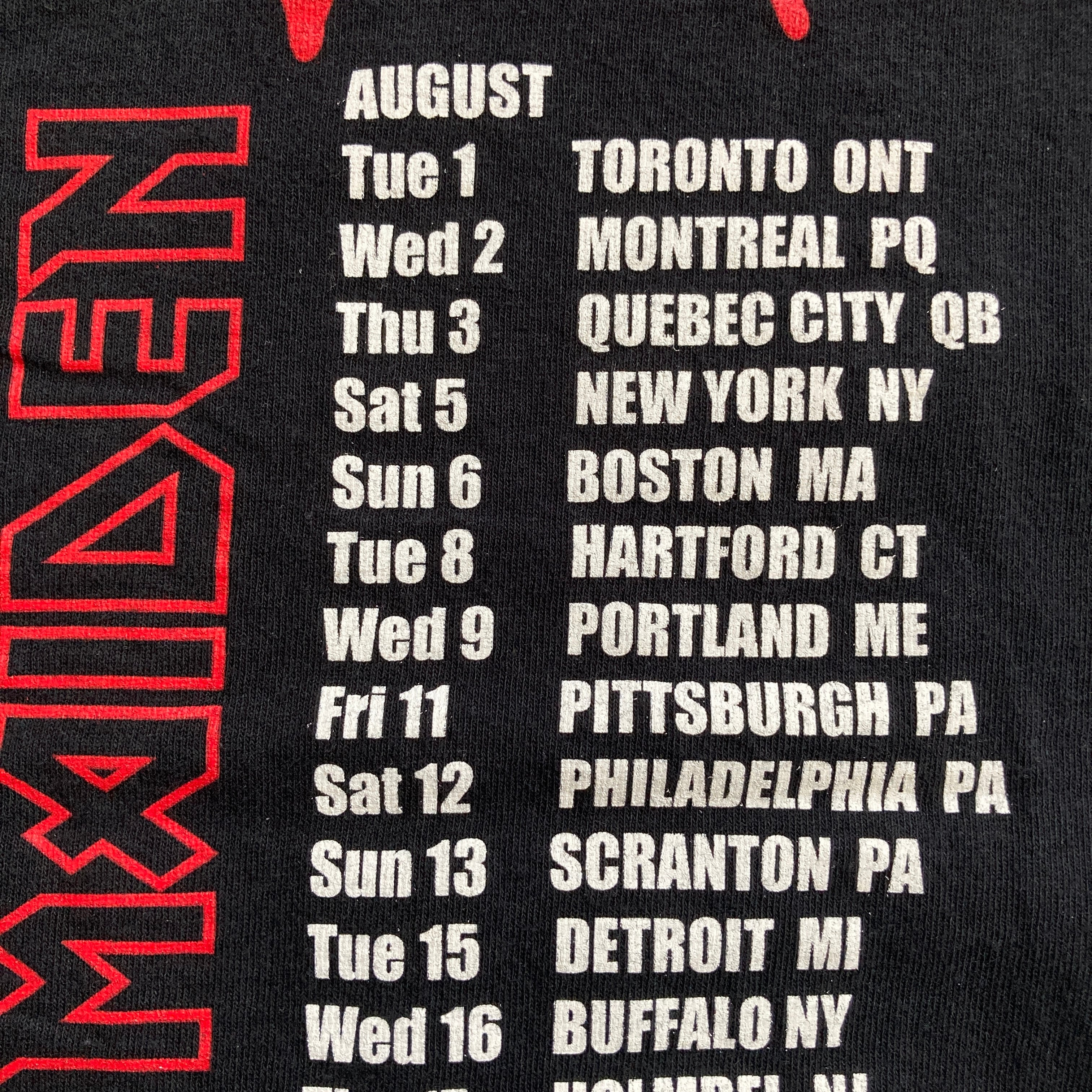 北米ツアースケジュールの背面プリントです。